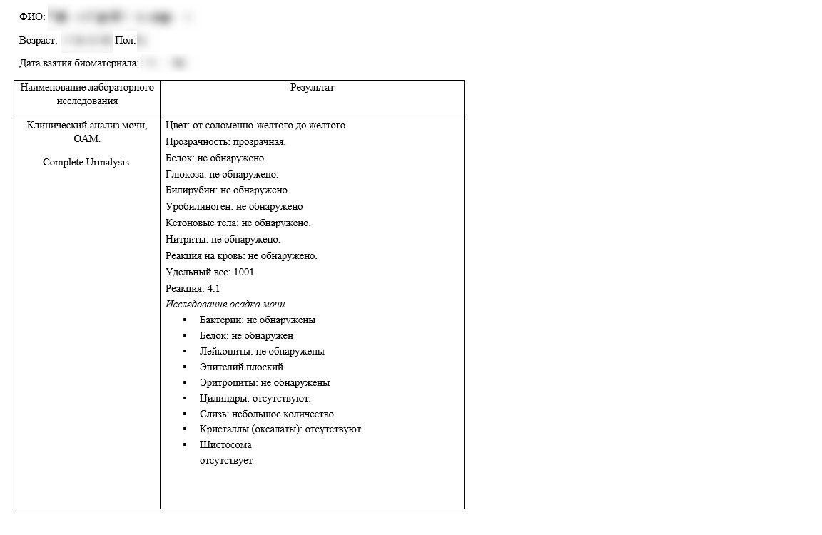 Как получить справку анализа мочи