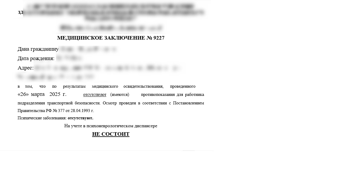 Купить медицинскую комиссию для сотрудников структур транспортной безопасности