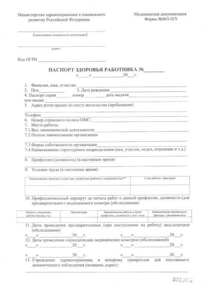 Паспорт здоровья работника 302н – назначение