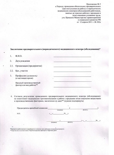 4. Направление от работодателя на медосмотр в соответствии с приказом Минздрава.