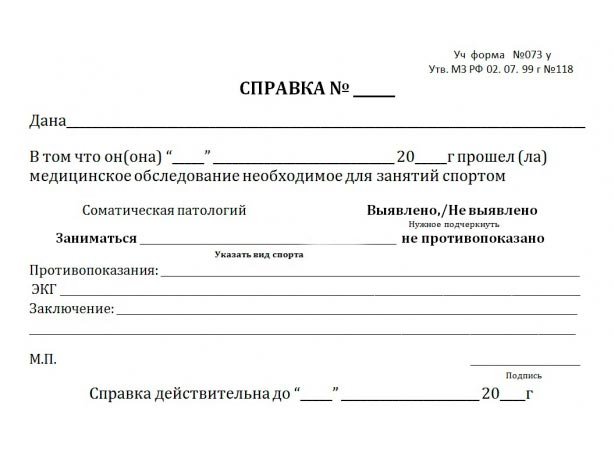 Справку 073 для занятий спортом ребенку сделают при наличии ограничений. Например, детям со второй группой здоровья нельзя участвовать в массовых спортивных соревнованиях, а с четвертой документ могут выдать исключительно на ЛФК.
