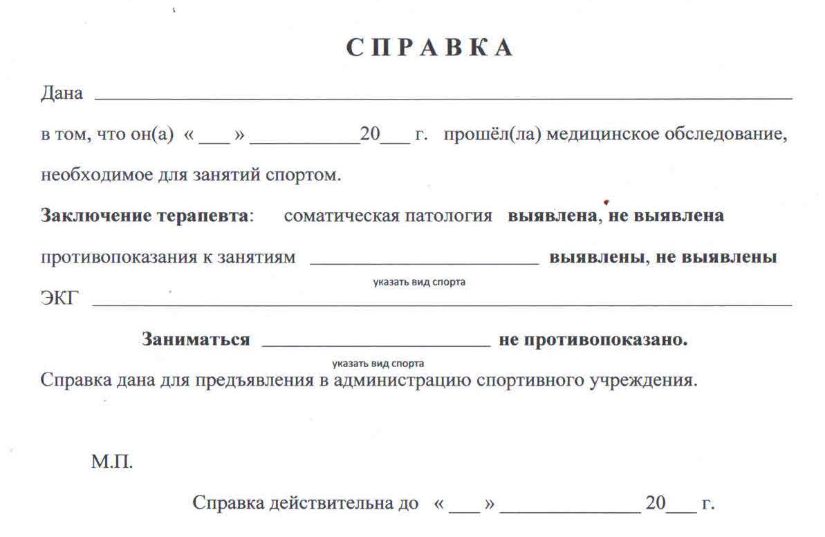 Медсправка для спортзала представляет собой врачебное заключение об отсутствии противопоказаний к тренировкам. Сроки действия документа – полгода. По сути, речь об аналоге справки для бассейна, но для оформления делать соскобы и сдавать анализы не требуется.