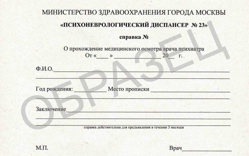 Купить справку из диспансера от психиатра